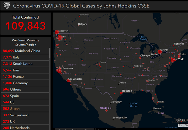 Each day as the coronavirus infection numbers explode in America, the mentally ill pandemic denialists have to double and triple down on their mental contortions to deny the reality unfolding right before their very eyes. Today, the US surpassed 500 infections and 21 deaths while 10,400 people are being monitored for possible infections (but not tested) in California alone.